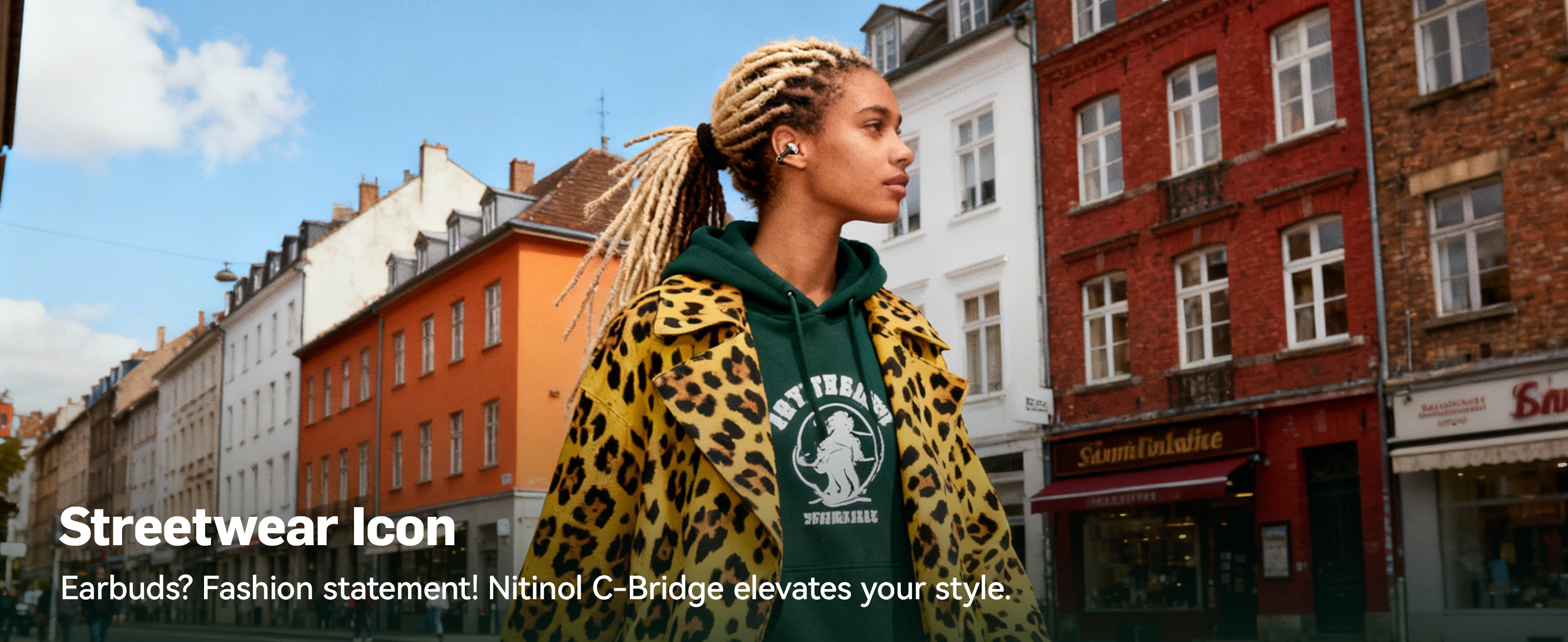 - Titanium clip-on design with understated metal and leather detailing creates a comfortable, modern open-ear look that fits naturally into everyday life—from morning workouts to evening commutes.