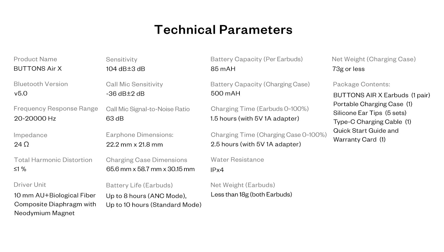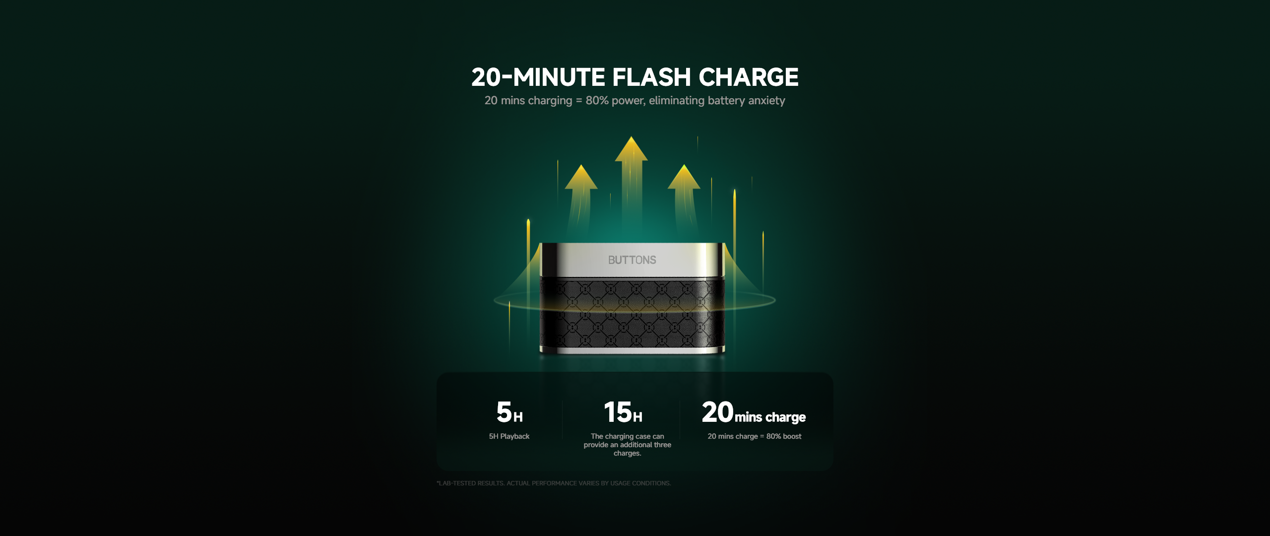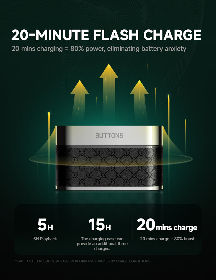 - Long battery: 10 hrs standalone, 30 hrs with charging case.