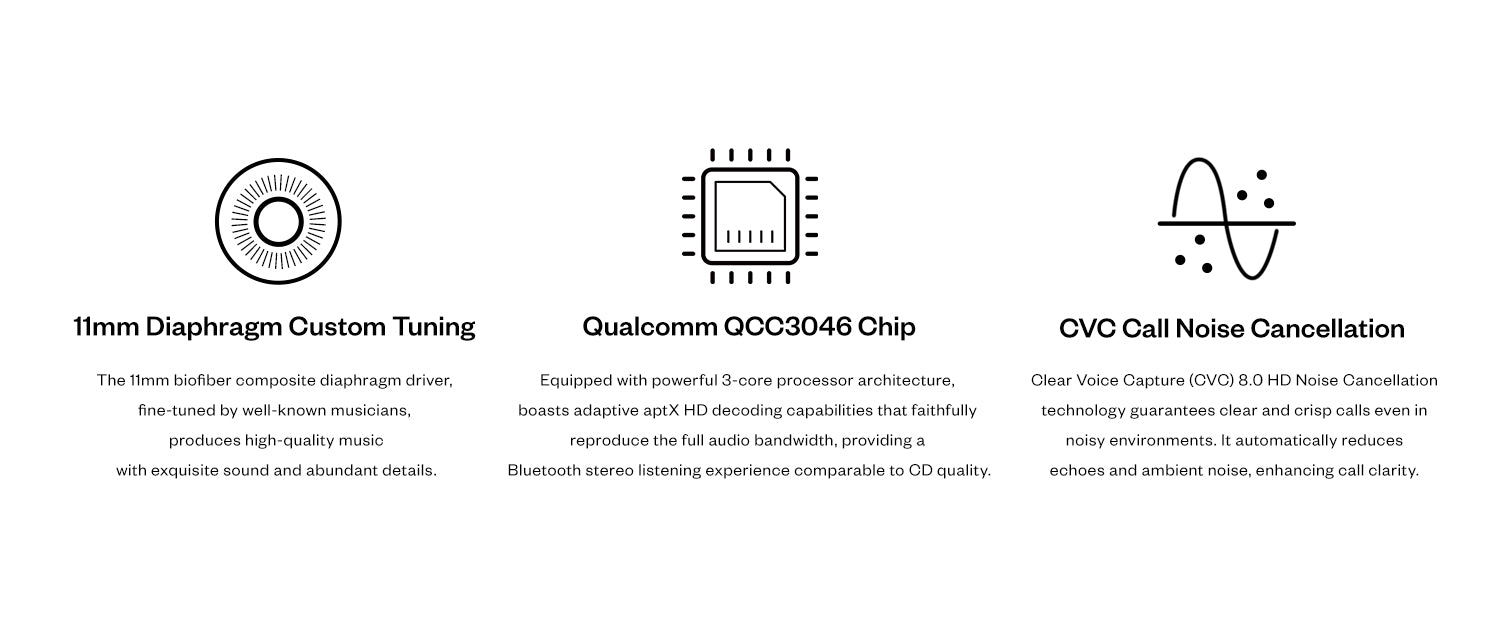 - Qualcomm chip, AptX-Adaptive, for top CD-quality sound.