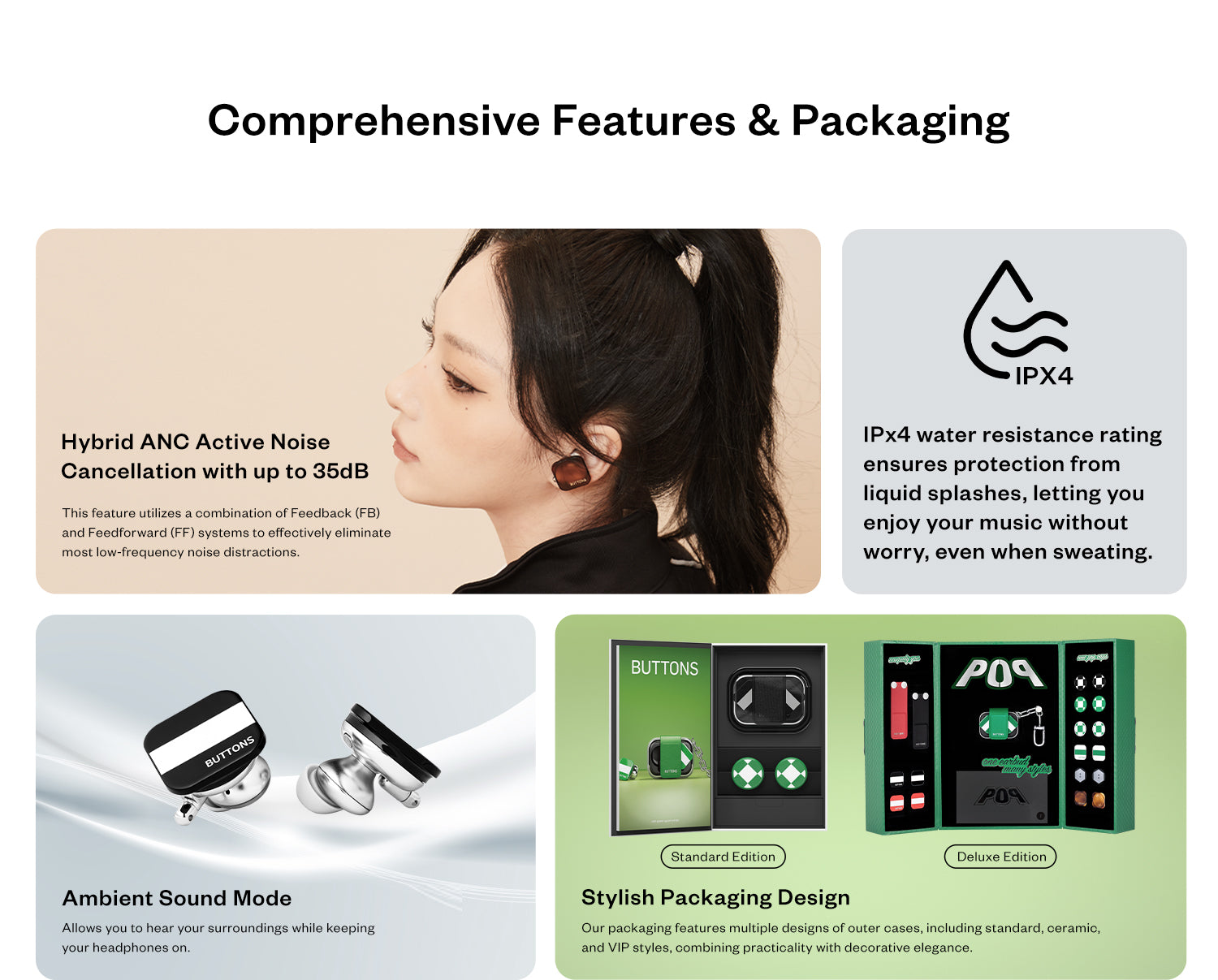 - Hybrid ANC, 35dB noise cut, clear calls, no distractions.